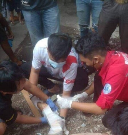 Saat ini relawan dan pihak kepolisian sudah berada di lokasi. Diinfokan relawan, bagian mulut pria tersebut berdarah juga mengalami patah tangan. “Korban diberi pertolongan pertama di lokasi, tangannya patahn,” info relawan.