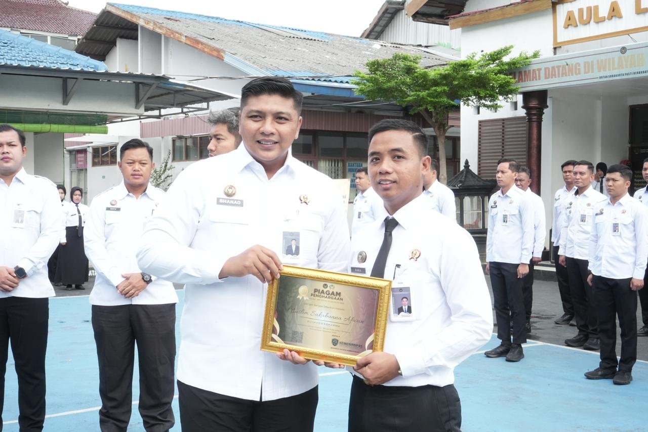 Kepala Rutan Kelas I Surakarta, Bhanad Shofa Kurniawan, dalam amanatnya menyampaikan apresiasi atas capaian kedua pegawai tersebut.