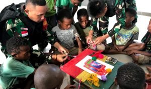 Asah Kreativitas, Satgas Yonif 310/KK Ajarkan Kerajinan Tangan Dan Mewarnai Pada Anak-Anak Papua