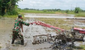 Serang, – Dalam rangka mendukung program ketahanan pangan nasional, Bintara Pembina Desa (Babinsa) Koramil 0602-18/Kragilan Kodim 0602/Serang, Sersan Dua (Serda) Humaedi, aktif mendampingi petani dalam proses pengolahan lahan pertanian periode kedua, bertempat di Desa Cisait Kecamatan Kragilan Kabupaten Serang, Provinsi Banten, Minggu (16/02/2025).