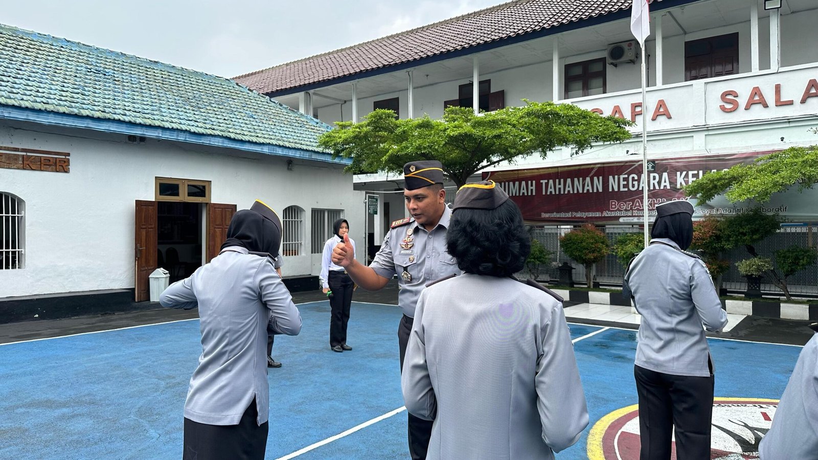 Surakarta – Wujudkan profesionalisme dalam berseragam, Kepala Rutan Kelas I Surakarta Kantor Wilayah Direktorat Jenderal Pemasyarakatan Jawa Tengah melakukan pengecekan terhadap kerapian seragam dan atribut pegawai di lingkungan Rutan Surakarta, Senin (03/03). Kegiatan ini dilakukan sebagai bagian dari upaya meningkatkan disiplin serta menegakkan standar profesionalisme di jajaran pegawai Rutan.