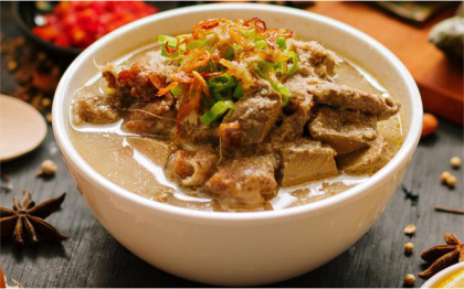Hidangan khas Bogor, Jawa Barat, ini disajikan dengan mie kuning, daging sapi, kikil, risol, serta kuah kaldu panas yang pedas.