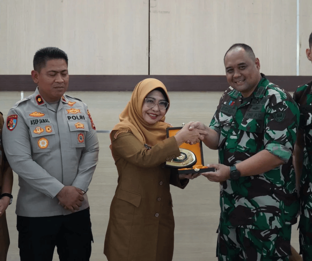 Bupati Pandeglang Dewi Setiani menerima kedatangan para perwira peserta Kuliah Kerja Lapangan (KKL) Wilayah Pertahanan Perwira Siswa Seskoad TA 2025 (Komando Resor Militer 064 Maulana Yusuf) bertempat di Pendopo, Senin (6/10/2025).