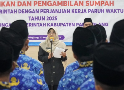 Pandeglang – Bupati Pandeglang Raden Dewi Setiani melantik 5.691 pegawai honorer menjadi Pegawai Pemerintah dengan Perjanjian Kerja (PPPK) paruh waktu.