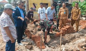Kota Serang – Komandan Kodim (Dandim) 0602/Serang Kolonel Inf Mulyo Junaidi, melaksanakan kegiatan peletakkan batu pertama tanda dimulainya program perehaban Rumah Tidak Layak Huni (Rutilahu), milik Warakawuri yang bernama Kartini berusia sekitar 80 tahun, bertempat di Lingkungan Sumber Harum Kelurahan Cipare Kecamatan Serang, Kota Serang Provinsi Banten, Senin (03/06/2024).