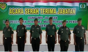 POLTEN.CO.ID – Dandim 0602/Serang Letkol Arm Fajar Catur Prasetyo, S.E memimpin pelaksanaan laporan Serah Terima Jabatan Danramil jajaran Kodim 0602/Serang. Acara serah terima jabatan tersebut berlangsung di Aula Sultan Ageng Tirtayasa Makodim 0602/Serang (09/02/2023).