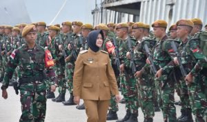 Nunukan – Dansatgas Pamtas RI-Malaysia Yonarmed 11 Kostrad, Letkol Arm Gde Adhy Surya Mahendra, menghadiri upacara pengantaran purna tugas Batalyon Arhanud 8/MBC yang digelar di Pelabuhan Tunontaka, Nunukan.