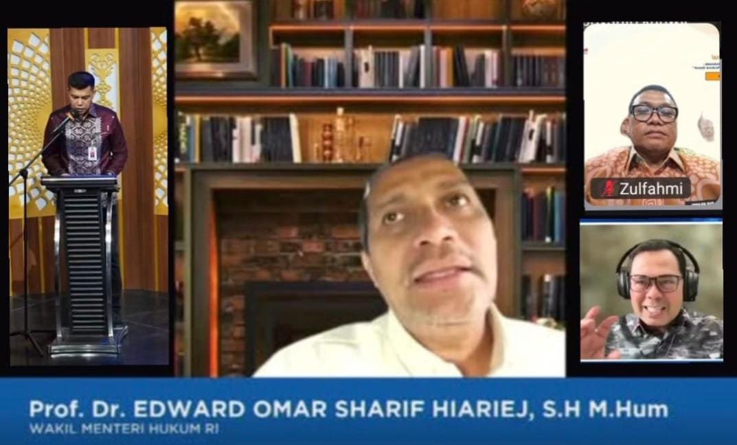 Kantor Wilayah Kementerian Hukum Maluku Utara mengikuti Webinar bertema “KUHP Baru Semangat Baru Untuk Indonesia: Strategi Pengaturan Tindak Pidana Dalam Peraturan Daerah” yang diselenggarakan oleh Kanwil Kemenkum Riau secara daring melalui Zoom Meeting dan Youtube, Kamis (20/11).