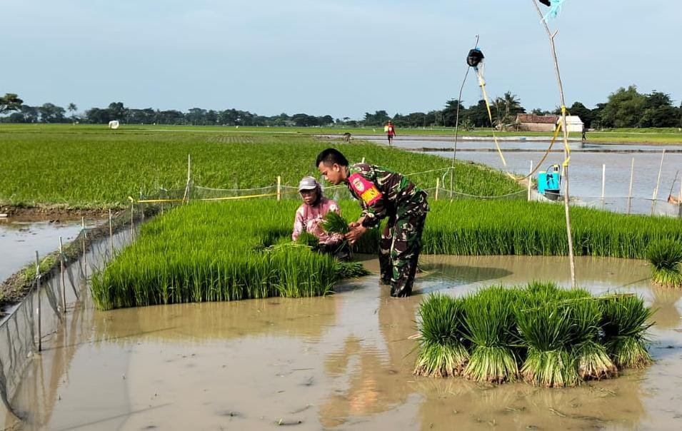 Dukung Ketahanan Pangan, Babinsa Koramil 0602-02/Kasemen Bantu Petani Siapkan Bibit Padi
