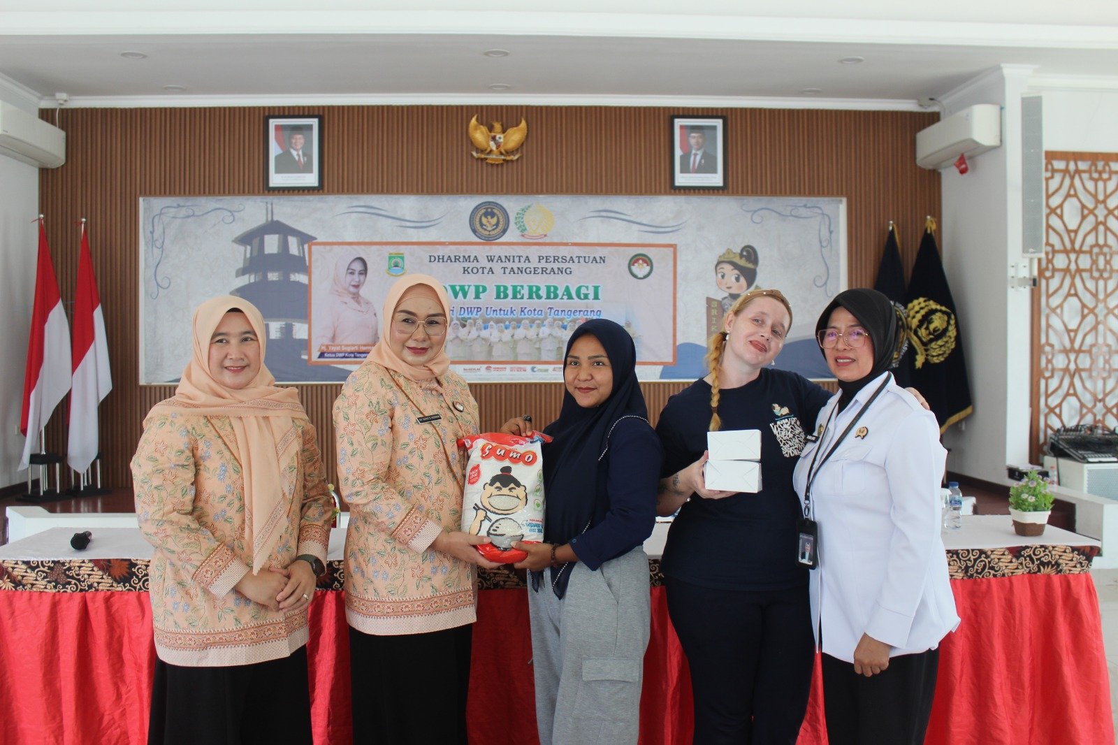 Usai penyampaian materi, dilakukan penyerahan bantuan sosial secara simbolis dari Dharma Wanita Persatuan Kota Tangerang kepada warga binaan, diikuti sesi foto bersama.