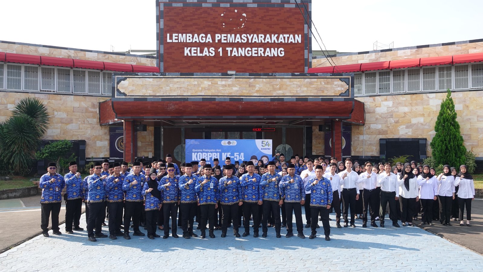 Tangerang, 01 Desember 2025 — Lembaga Pemasyarakatan Kelas I Tangerang menyelenggarakan Upacara Bendera Peringatan HUT Korps Pegawai Republik Indonesia (KORPRI) ke-54 di halaman depan Lapas. Upacara dipimpin oleh Kepala Lapas Kelas I Tangerang, Beni Hidayat, dan diikuti oleh seluruh pejabat struktural, pegawai, CPNS, serta peserta pemagangan.