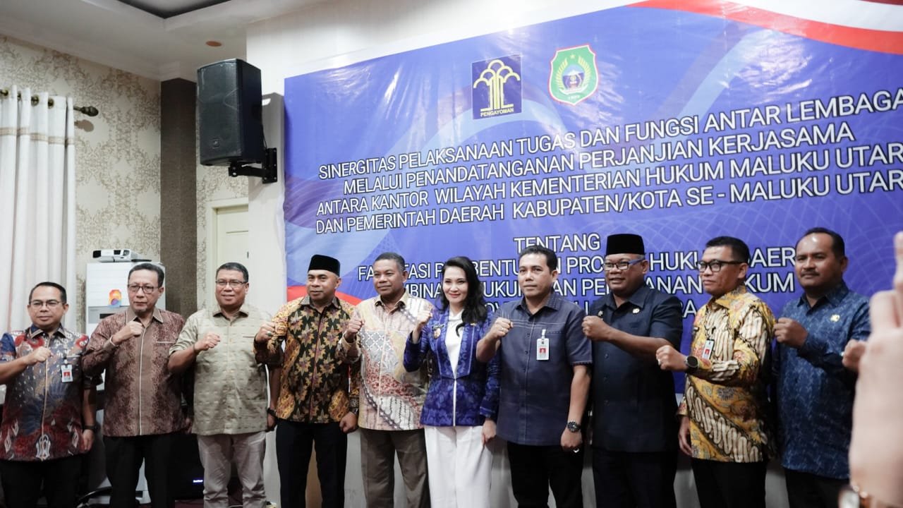 “Untuk itu, harapan kami para Bupati dan Walikota se Malut dapat menjadikan kerja sama ini sebagai momentum mempercepat penguatan produk hukum daerah, pendirian pos bantuan hukum di 1.185 desa/kelurahan di Malut, peran kades/lurah sebagai juru damai, desa sadar hukum, dan pelayanan hukum,” lanjut Argap Situngkir.