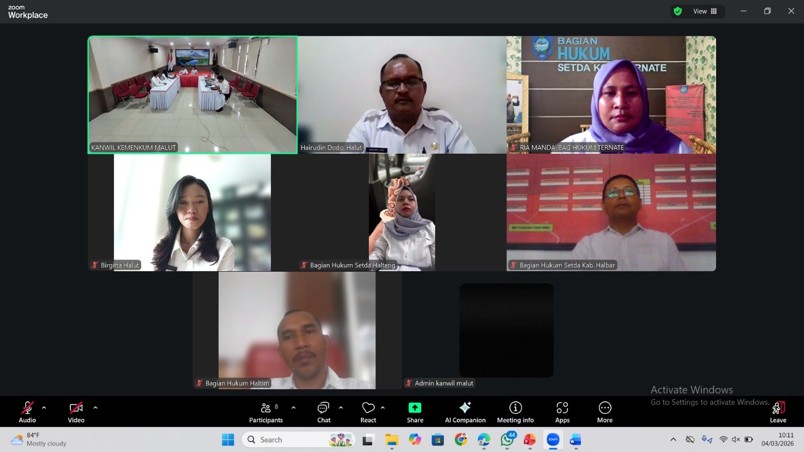 Kegiatan yang dimulai pukul 09.30 WIT tersebut merupakan lanjutan dari agenda pendampingan yang dijadwalkan selama dua hari dengan sistem zonasi. Pada hari kedua ini, peserta yang mengikuti kegiatan terdiri dari Penanggung Jawab (PIC) dan Kepala Bagian (Kabag) Hukum Pemerintah Kota (Pemkot) Ternate, Kabupaten Halmahera Barat (Halbar), Kabupaten Halmahera Tengah (Halteng), Kabupaten Halmahera Timur (Haltim), Kabupaten Halmahera Utara (Halut), serta Pemerintah Kota Tidore Kepulauan (Tikep).