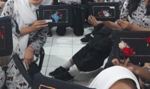 Di dalam lapas, hasil sulaman para siswa tersebut kemudian dikembangkan menjadi produk bernilai guna. Warga binaan yang memiliki keterampilan menjahit mengolah kain sulam pita tersebut menjadi pouch yang rapi dan fungsional. Proses ini tidak hanya menambah nilai estetika karya awal, tetapi juga menciptakan kolaborasi yang saling melengkapi antara kreativitas siswa dan kemampuan teknis warga binaan.