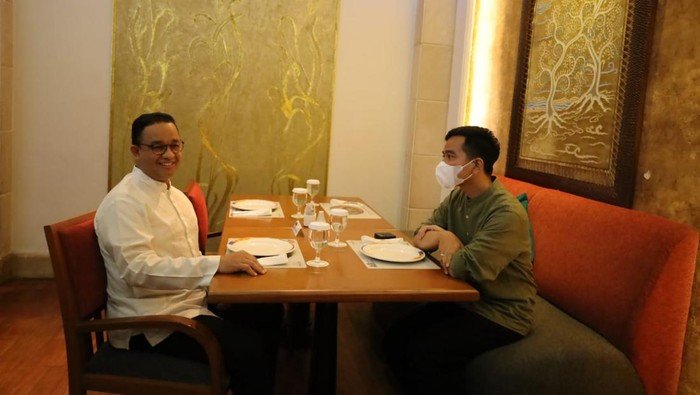 Mantan Gubernur DKI Jakarta dan putra sulung Presiden Jokowi itu, bertemu dan sarapan bersama di restoran Handrawina, Hotel Novotel Solo selama 40 menit.