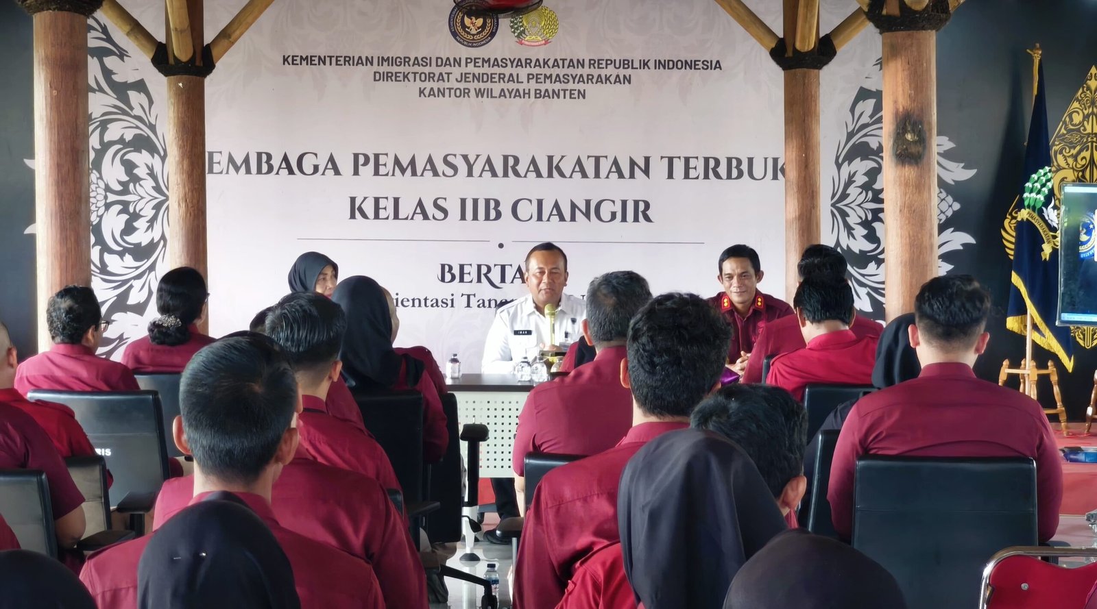Kedatangan Inspektur Wilayah I disambut hangat oleh Kepala Lapas Terbuka Kelas IIB Ciangir, Soeistanto Poedji Djatmiko, beserta jajaran. Dalam suasana yang penuh semangat, Dr. Iwan Santoso kemudian memberikan pengarahan kepada pegawai Lapas Terbuka Ciangir dan Bapas Ciangir.