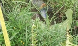 Diperkirakan sudah lebih 4 hari, hingga bagian kepala sudah membusuk, diketahui jasad tersebut berbaju kaos warna abu-abu dan menggunakan celana levis warna abu-abu.