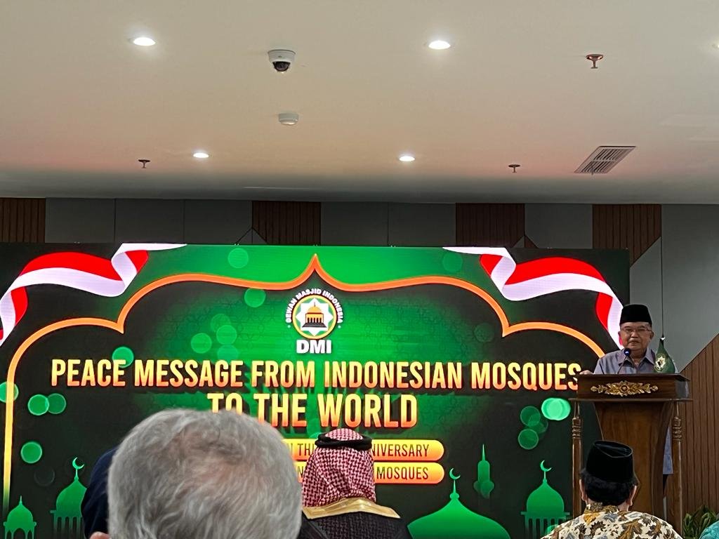 Dalam sambutannya berjudul “Peace Message from the Indonesian Mosques to the World” untuk menandai milad DMI ke-50, JK mengatakan ia ingin berbagi pengalaman tentang bagaimana memimpin DMI yang merupakan organisasi payung dari lebih 800.000 masjid di seluruh Indonesia. PP DMI telah bekerja mempromosikan peran masjid memperbaiki sosio-ekonomi komunitas dengan visi “Memakmurkan dan Dimakmurkan Masjid”.