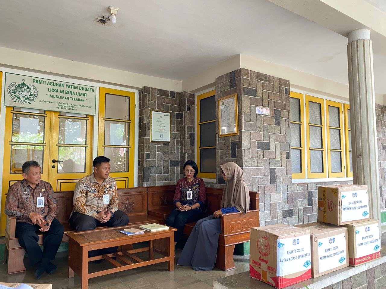 Surakarta – Wujudkan komitmennya dalam menjalankan program kemanusiaan, Rutan Kelas I Surakarta laksanakan kegiatan bhakti sosial yang digelar di Panti Asuhan Yatim Dhuafa LKSA M Bina Umat “Muslimah Teladan”, Jumat (17/10). Kegiatan ini dipimpin langsung oleh Kepala Seksi Pelayanan Tahanan, Bayu Noviyanto mewakili Karutan Surakarta didampingi oleh pejabat struktural lainnya sebagai bentuk kepedulian dan kepedulian sosial terhadap anak-anak yatim dhuafa yang membutuhkan uluran tangan.
