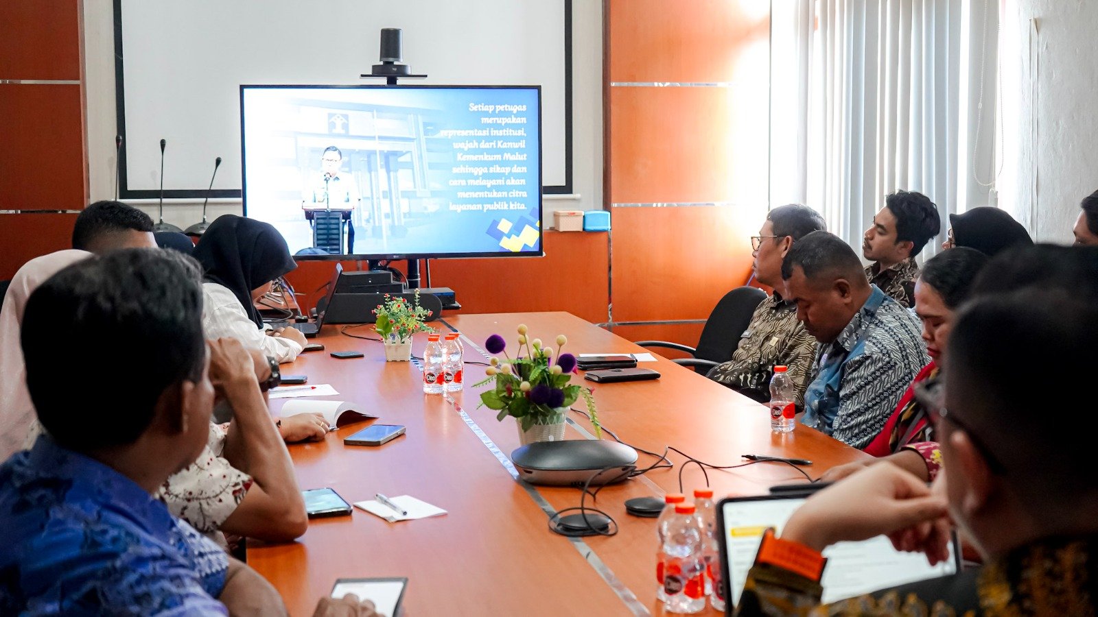 Ternate – Upaya Kantor Wilayah (Kanwil) Kementerian Hukum (Kemenkum) Maluku Utara (Malut) memberikan pelayanan secara prima merupakan bagian terintegrasi dengan komitmen membangun zona integritas. Kepala Divisi Pelayanan Hukum, Rian Arvin mengatakan pentingnya seluruh pihak baik pegawai, petugas layanan, pihak keamanan, dan help desk untuk memahami standar operasional prosedur (SOP) layanan di lingkungan Kanwil Kemenkum Malut, termasuk kekayaan intelektual (KI) dan administrasi hukum umum (AHU).