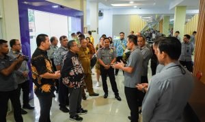 Ternate – Kakanwil Kemenkumham Malut Andi Taletting Langi mendampingi Deputi Bidang Politik, Hukum, dan Kemanan (Polhukam) Sekretariat Kabinet Republik Indonesia (Setkab RI), Purnomo Sucipto saat mengunjungi Kanim Kelas I TPI Ternate, Selasa (8/10).