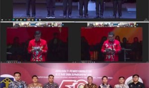 JAKARTA – Kepala Lapas Cikarang Veri Johanes beserta jajaran mengikuti secara langsung pelaksanaan Syukuran Hari Bakti Pemasyarakatan Ke-59 dengan tema “Transformasi Pemasyarakatan semakin Pasti dan BerAkhlak, Indonesia Maju” yang dilaksanakan di Ciputra Artpreneur.