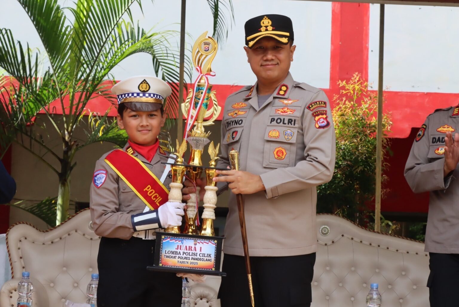 Dalam kegiatan tersebut, AKBP Dr. Dhyno Indra Setyadi secara langsung menyerahkan piala Juara I Polisi Cilik tingkat Polres Pandeglang kepada perwakilan siswa SDN 4 Pandeglang yang tergabung dalam tim Polisi Cilik. Prestasi tersebut berhasil diraih setelah tim Polisi Cilik SDN 4 Pandeglang menunjukkan kemampuan terbaiknya dalam berbagai aspek penilaian, mulai dari kedisiplinan baris-berbaris, kekompakan, ketepatan gerakan, hingga pemahaman dasar tentang peraturan lalu lintas.