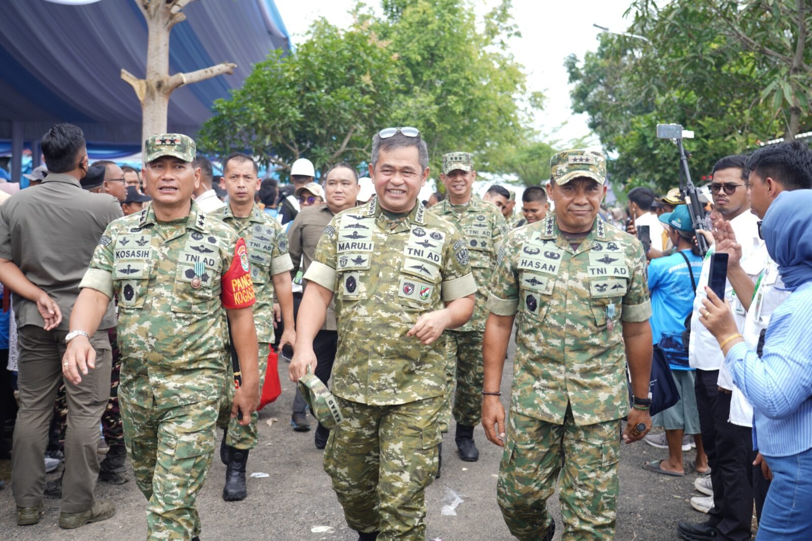 Kepala Staf Angkatan Darat (Kasad) Jenderal TNI Maruli Simanjuntak, M.Sc., menghadiri Panen Raya yang dirangkaikan dengan pengumuman capaian swasembada pangan nasional bersama Presiden Republik Indonesia Prabowo Subianto di Cilebar, Kabupaten Karawang, Jawa Barat, Rabu (7/1/2026).