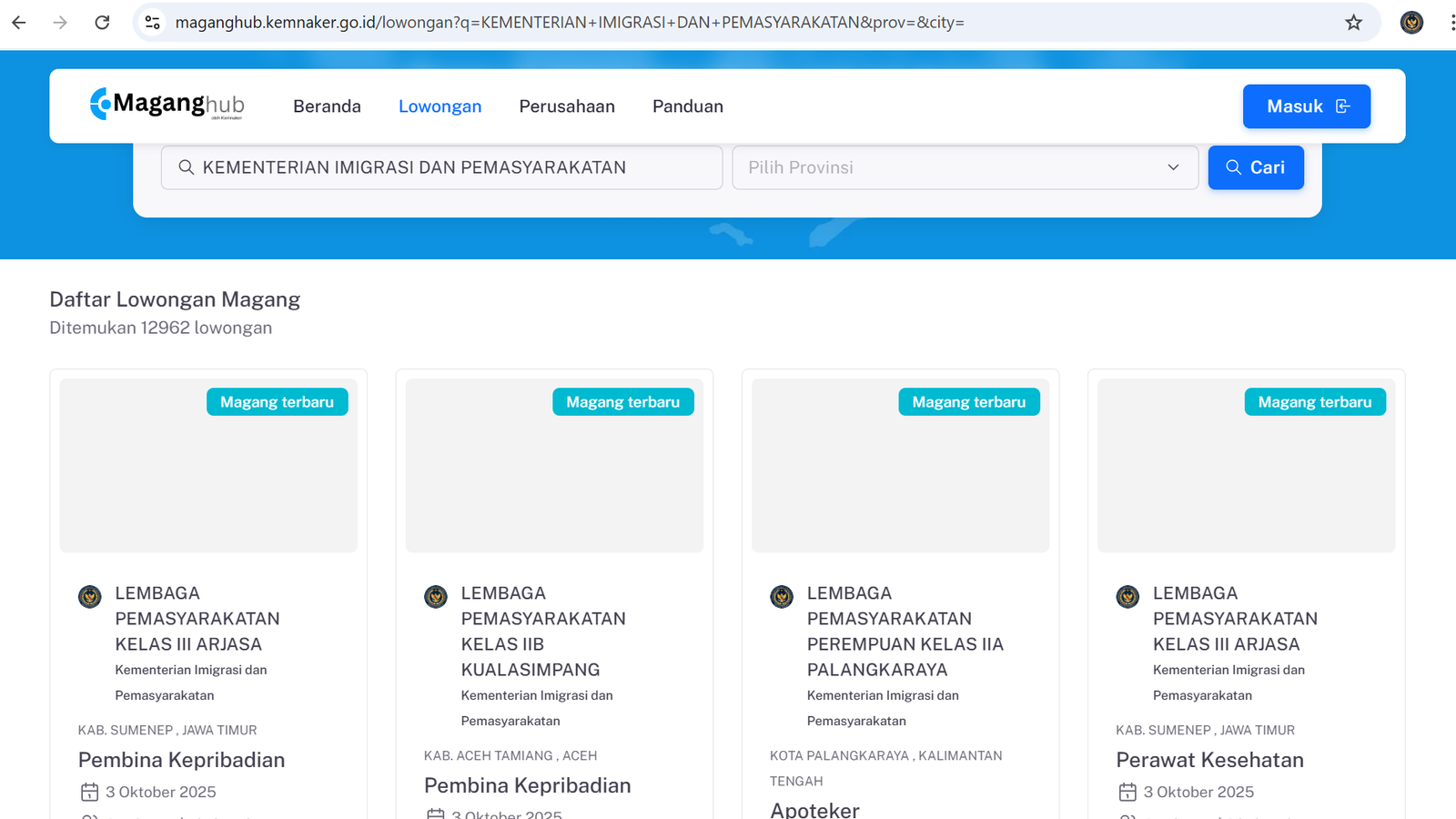 Kementerian Imigrasi dan Pemasyarakatan (Kemenimipas) telah membuka kesempatan magang bagi 39.496 fresh graduate yang ingin mengasah kompetensi dan memperoleh pengalaman kerja di lingkungan pemerintahan. Program ini menjadi bagian dari upaya Kemenimipas untuk mencetak generasi muda yang berintegritas, profesional, dan siap berkontribusi bagi pelayanan publik.