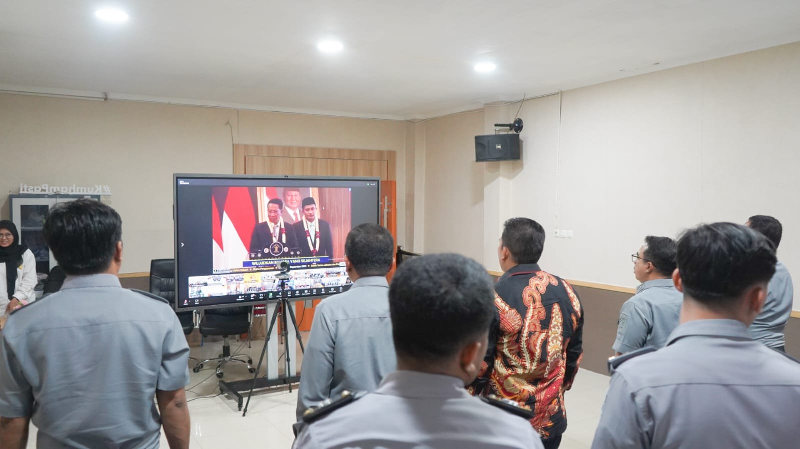 Kakanwil Kemenkum Malut, Budi Argap Situngkir, turut hadir bersama jajaran pimpinan tinggi pratama, yakni Kadiv P3H Zulfahmi, Kadiv Yankum Chusni Thamrin, serta Kabid AHU Muhd. Kasim Umasangadji, Kabid KI Zulfikar Galea, seluruh pegawai, termasuk para CPNS.