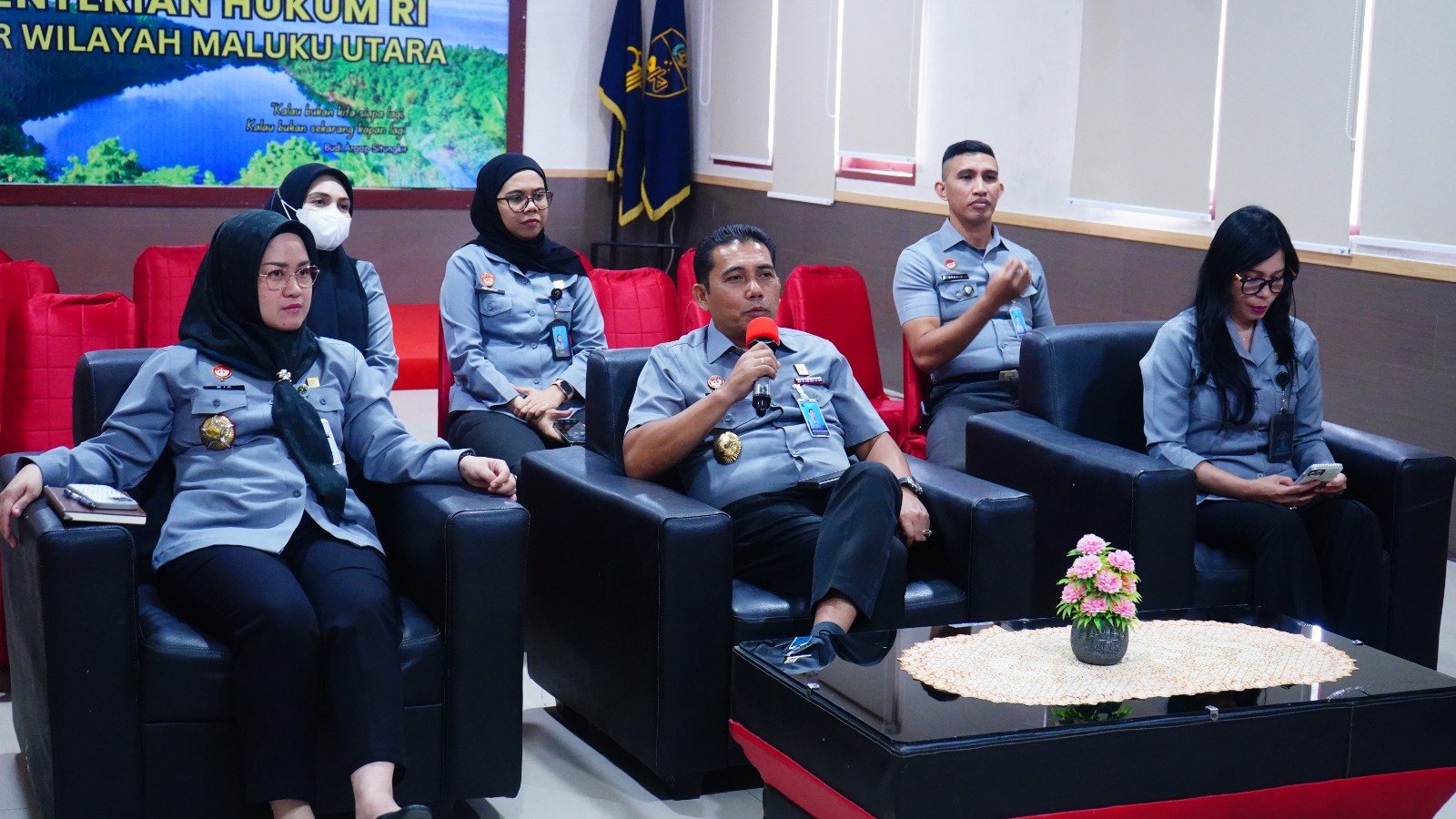 Kegiatan tersebut turut dihadiri Kepala Divisi Peraturan Perundang-undangan dan Pembinaan Hukum, Mia Fitriana Kusuma, diikuti Kepala Divisi Pelayanan Hukum, Rian Arvin, bersama jajaran Kemenkum Malut.