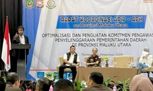 Ternate – Rapat Koordinasi Aparat Pengawas Intern Pemerintah (APIP) dan Aparat Penegak Hukum (APH) se Provinsi Maluku Utara (Malut) membedah problem dan tantangan yang patut diambil seluruh pihak dalam upaya optimalisasi dan penguatan komitmen pengawasan penyelenggaraan pemerintah daerah (pemda) di Provinsi Malut.