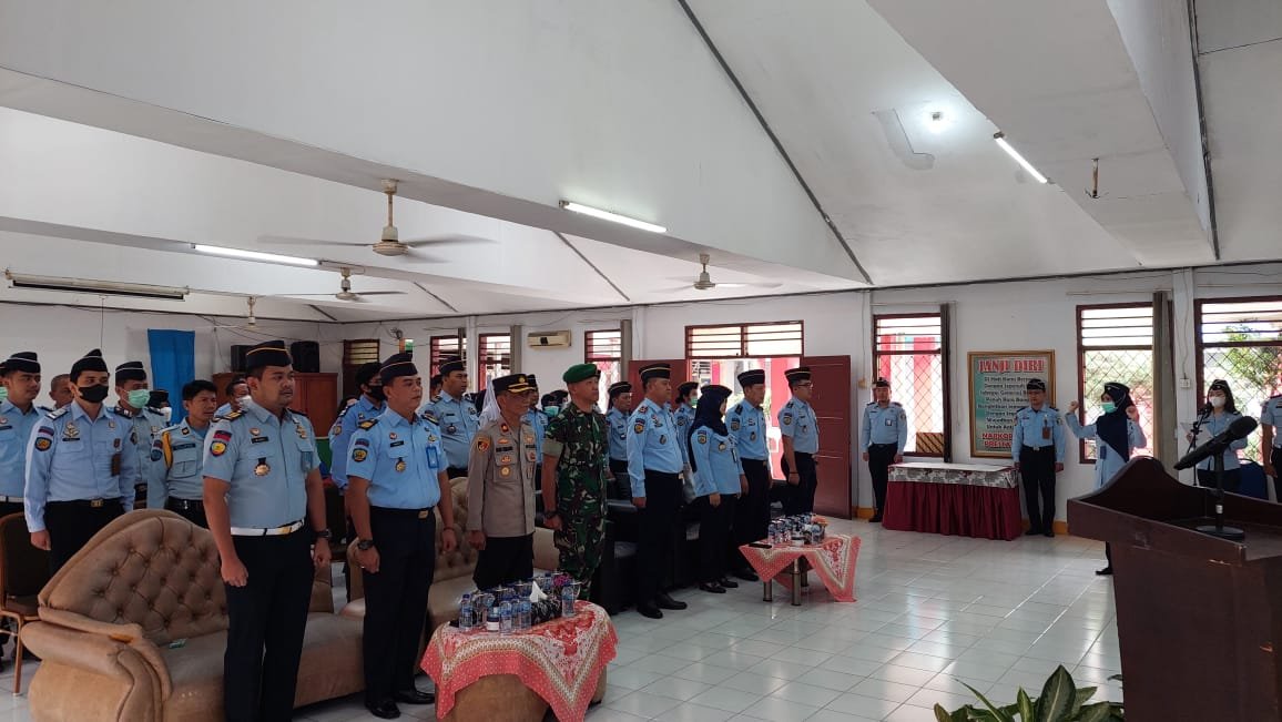 BEKASI– Dipimpin langsung oleh Kepala Lembaga Pemasyarakatan Kelas IIA Bekasi diikuti seluruh pegawai laksanakan Deklarasi dan penandatangan komitmen bersama terkait Zero Halinar (Hanphone, Pungli dan Narkoba) disaksikan langsung oleh Aparat Penegak Hukum Kapolres dan Dandim Kota Bekasi. (08/05/23).