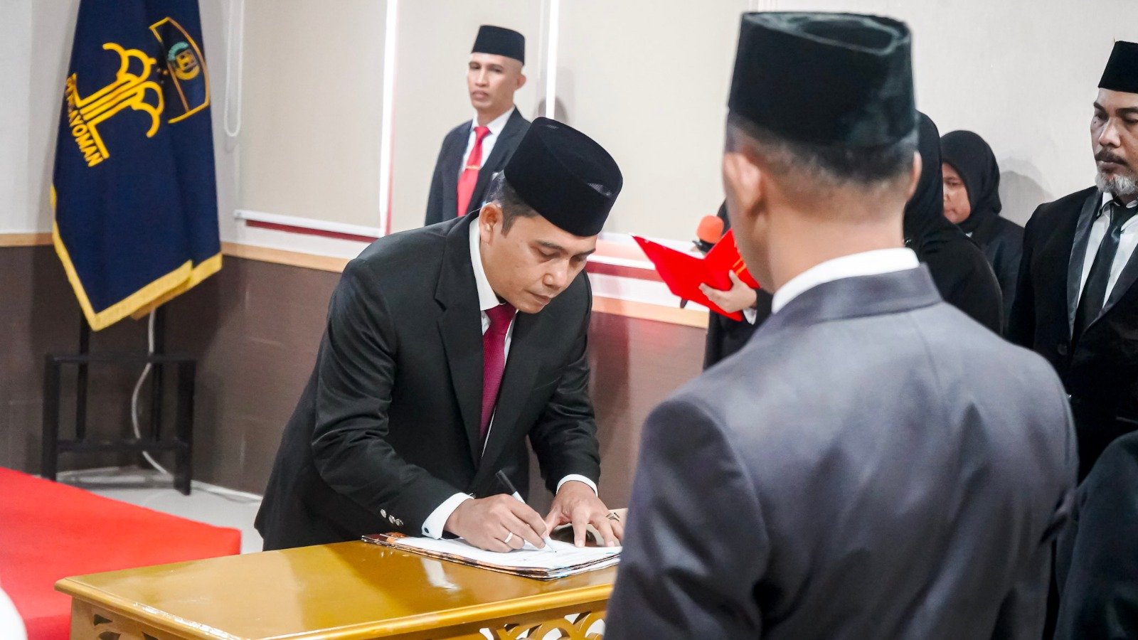 Ternate – Kepala Kantor Wilayah (Kakanwil) Kementerian Hukum (Kemenkum) Maluku Utara (Malut), Budi Argap Situngkir (BAS) melantik dan mengambil sumpah jabatan enam (6) notaris baru wilayah Provinsi Maluku Utara di Aula Gamalama Kantor Wilayah (Kanwil) Kementerian Hukum (Kemenkum) Maluku Utara (Malut), Senin (23/2/2026).