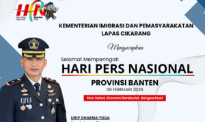 Kepala Lapas Cikarang, Urip Dharma Yoga mengucapkan Selamat memperingati Hari Pers Nasional (HPN) Tahun 2026 yang diselenggarakan di Provinsi Banten sebagai tuan rumah.