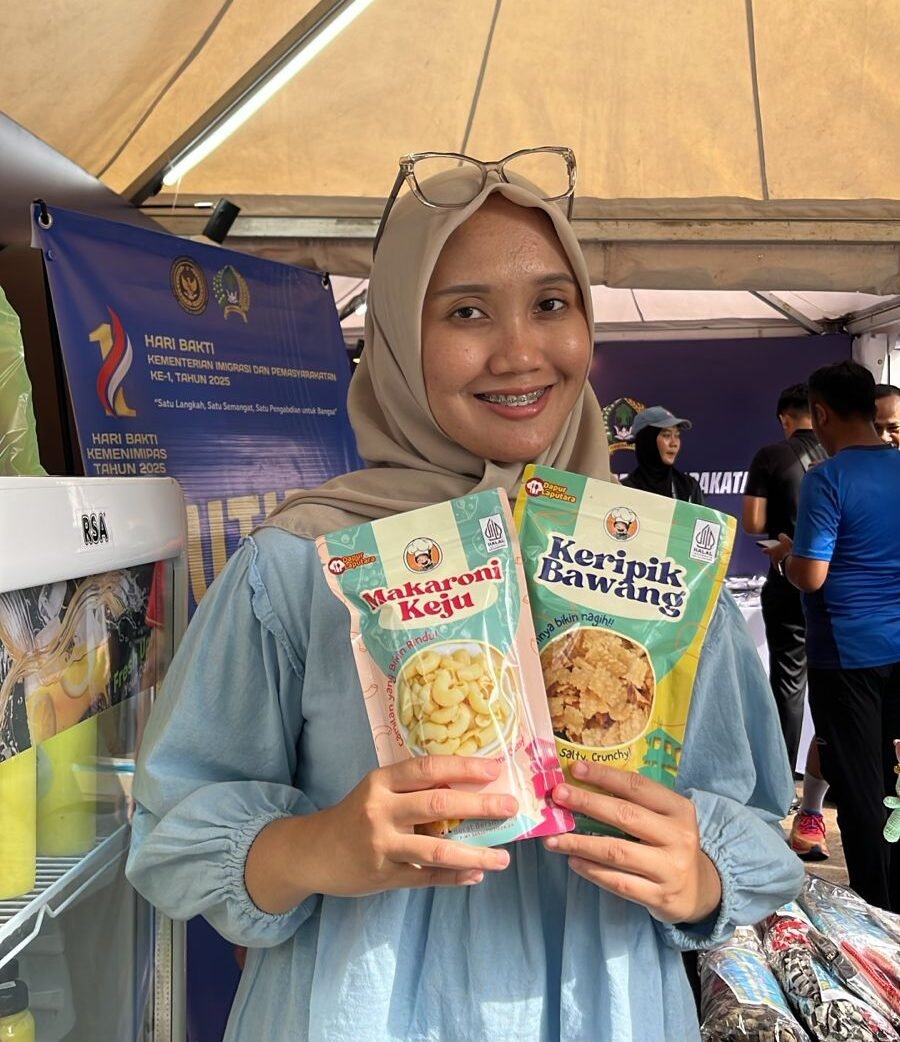 Jakarta, 16 November 2025 – Lapas Perempuan Kelas IIA Tangerang ikut berpartisipasi pada kegiatan Festival Keimigrasian (IMIFEST) Tahun Anggaran 2025 yang diselenggarakan di Hutan Kota GBK, Pintu 7 Senayan, pada Minggu (16/11). Pada kesempatan ini, Lapas Perempuan Kelas IIA Tangerang menampilkan produk unggulan hasil karya narapidana, yakni Makaroni Keju dan Keripik Bawang