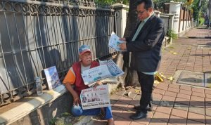 Di kawasan kuningan Jakarta, di antara gemerlapnya lampu dan kesibukan kendaraan bermotor, seorang lelaki berusia 70-an tahun duduk merengkuh di trotoar. Namanya Saiman, di hadapannya terhampar puluhan eksemplar koran.