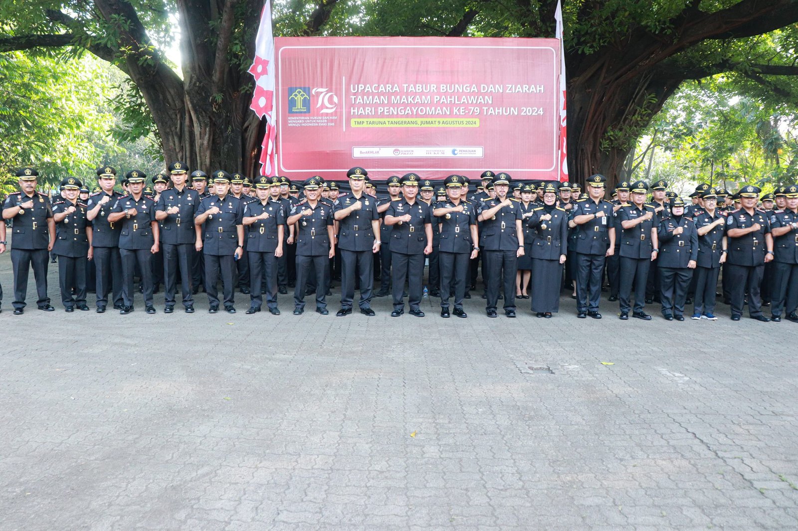POLTEN.CO.ID – Memperingati Hari Pengayoman Ke-79, Kepala Kantor Wilayah Kemenkumham Banten beserta Kepala Divisi, Kaupt dilingkungan Kanwil Kemenkumham banten melaksanakan upacara dan tabur bunga di Taman Makam Pahlawan (TMP) Taruna Daan Mogot. Jumat (9/08/2024).