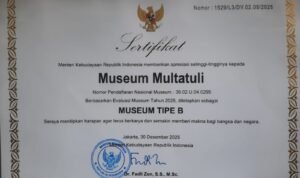 Museum Multatuli di Kabupaten Lebak kembali mencatat prestasi penting di tingkat nasional setelah ditetapkan sebagai Museum Tipe B oleh Kementerian Kebudayaan Republik Indonesia melalui hasil Evaluasi Museum Tahun 2025. Penetapan ini diumumkan Kamis (22/1/2026) dan disertai sertifikat resmi yang ditandatangani oleh Menteri Kebudayaan RI.