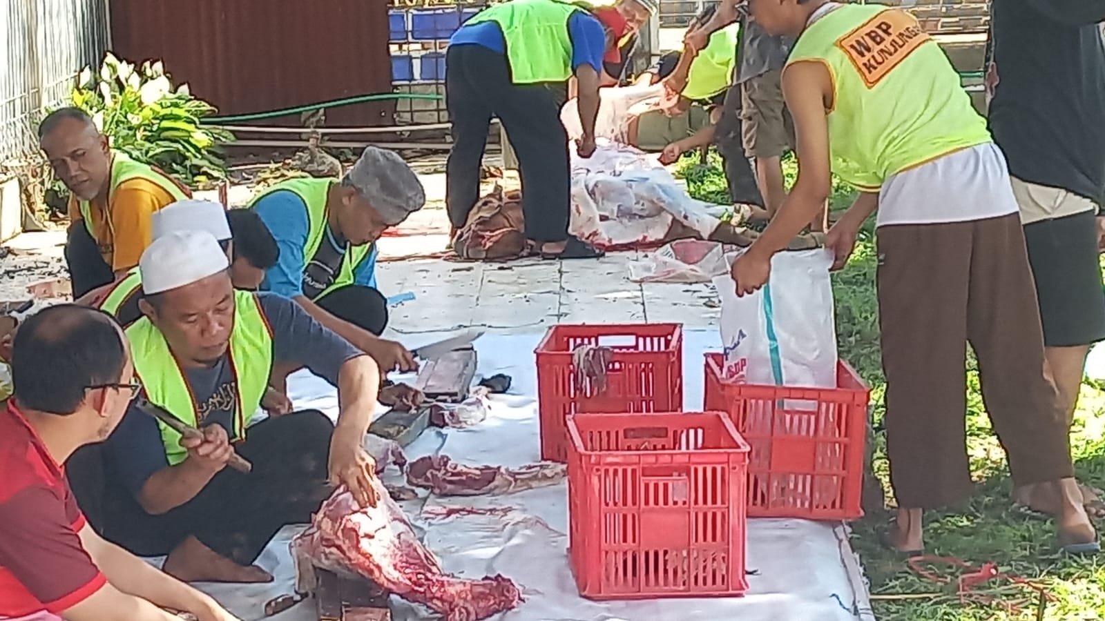 BANDUNG,- Lapas Kelas IIA Banceuy Bandung melaksanakan penyembelihan hewan kurban yang dilaksanakan oleh pegawai dan Warga Binaan Lapas Kelas IIA Banceuy Bandung.