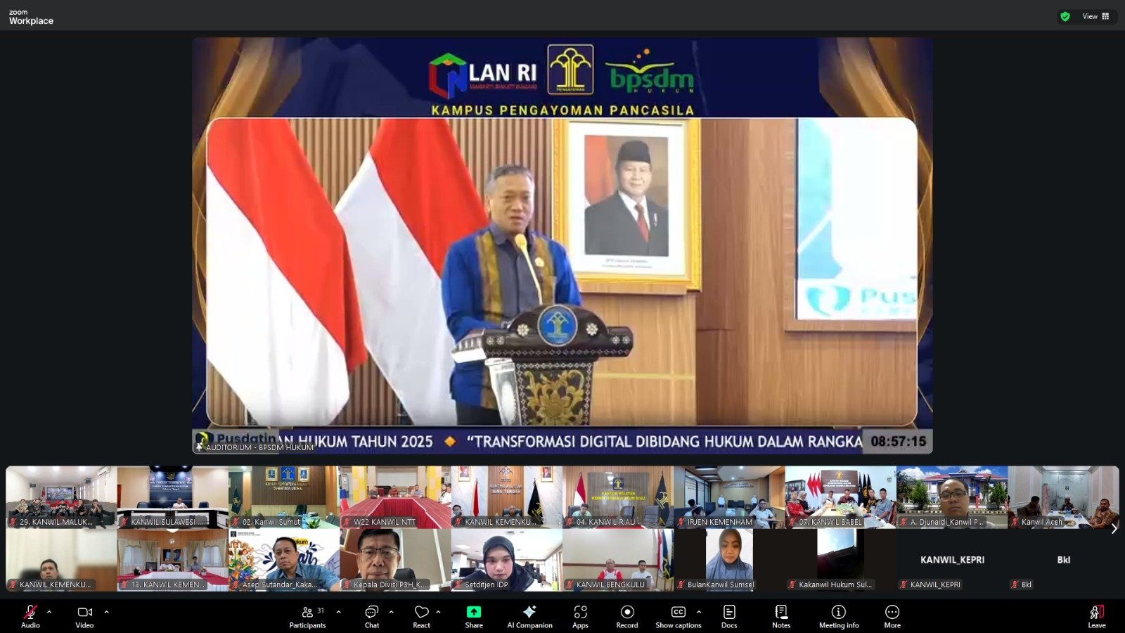 Ternate – Kepala Kantor Wilayah (Kakanwil) Kementerian Hukum (Kemenkum) Maluku Utara (Malut) Budi Argap Situngkir bersama jajaran turut mengikuti kegiatan “Pelepasan Pelatihan Kepemimpinan Nasional (PKN) Tingkat II Angkatan XIV Tahun Anggaran 2025” yang diselenggarakan oleh Badan Pengembangan Sumber Daya Manusia Hukum (BPSDM) Republik Indonesia, secara daring Jum’at (17/10/2025).