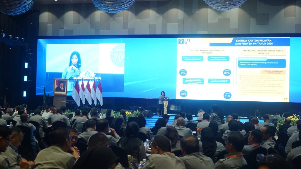 Jakarta – Kepala Kantor Wilayah (Kakanwil) Kementerian Hukum (Kemenkum) Maluku Utara (Malut), Budi Argap Situngkir mengikuti Rapat Koordinasi Capaian Kinerja Tahun 2025, bertempat di Ballroom Hotel Mercure, Jakarta, Selasa (16/12). Pada hari kedua, para peserta yang terdiri atas Pimpinan Tinggi (Pimti) Madya dan Pratama Unit Utama, para Kepala Bagian (Kabag) pada Unit Utama dan Kanwil mengikuti materi tentang pembinaan hukum, pembinan SDM, dan kebijakan berdampak.