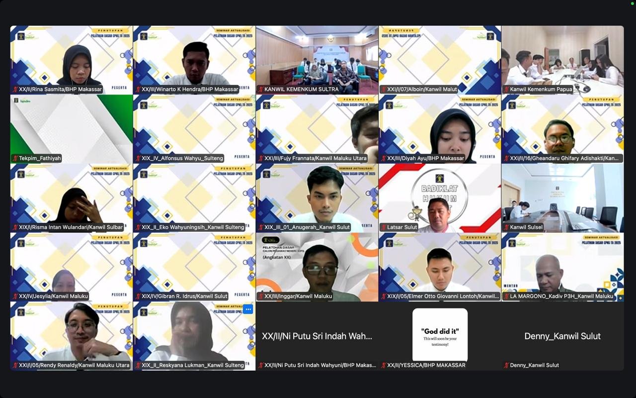 Ternate – Pelaksanaan Pelatihan Dasar (Latsar) Calon Pegawai Negeri Sipil (CPNS) angkatan XXI golongan III tahun 2025 metode pembelajaran jarak jauh pada wilayah kerja Balai Pendidikan dan Pelatihan Hukum Sulawesi Utara (Sulut) Kementerian Hukum (Kemenkum) resmi ditutup, Kamis (20/11).