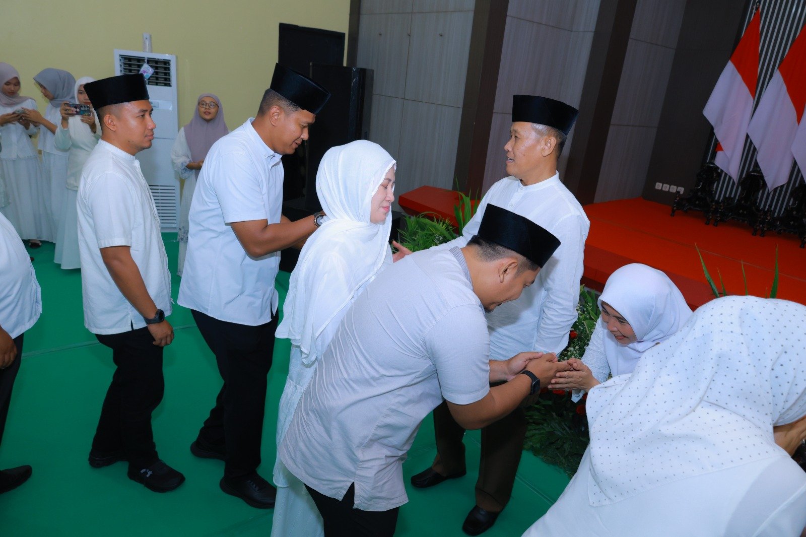 Sidoarjo – Kepala Rumah Tahanan Negara (Rutan) Bangil, Yanuar Rinaldi, beserta jajaran Paguyuban Ibu-Ibu Pemasyarakatan (PIPAS) Cabang Rutan Bangil turut berpartisipasi dalam acara Halalbihalal yang diselenggarakan pada hari Sabtu (04/04). Kegiatan penuh keakraban ini bertempat di Aula Lembaga Pemasyarakatan (Lapas) Kelas I Surabaya. Acara tersebut menjadi momen istimewa karena diikuti oleh seluruh Kepala Satuan Kerja Pemasyarakatan se-Jawa Timur beserta pengurus dan anggota PIPAS Jawa Timur.