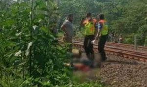 Sementara itu, salah seorang warga setempat Udin 42 tahun mengatakan, dua korban itu tertabrak KRL hingga terpental dari rel.