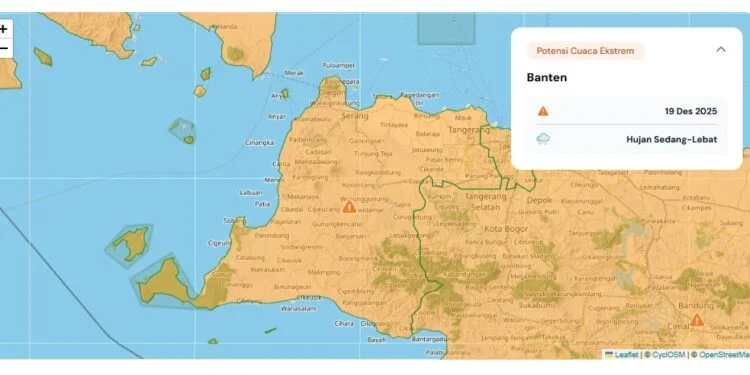 Polda Banten kembali mengimbau masyarakat untuk meningkatkan kewaspadaan terhadap potensi cuaca ekstrem berdasarkan pembaruan informasi dari Badan Meteorologi, Klimatologi, dan Geofisika (BMKG) Banten per Jumat, 19 Desember 2025.