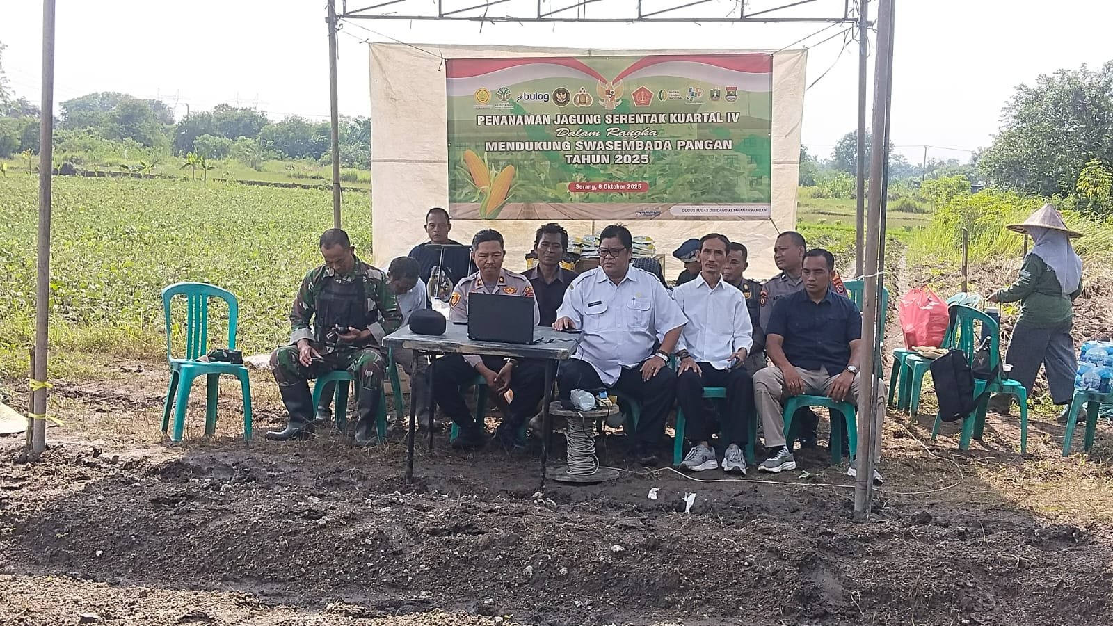 Kepolisian Sektor (Polsek) Kragilan, Polres Serang menggelar Penanaman Jagung Serentak Kuartal IV di lima lokasi pada seluas 2 hektar di Kampung Sadang, Desa Pematang, Kecamatan Kragilan, Kabupaten Serang, Rabu (8/10/2025).