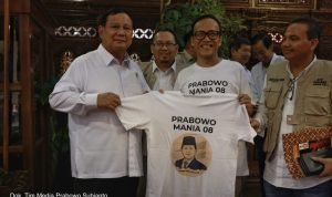 Keterangan pers yang diterima kantor pusat Serikat Media Siber Indonesia (SMSI) di Jakarta Jumat (17/2/2023) menjelaskan,Prabowo mengaku kaget dengan baju yang dikenakan para relawan tersebut, bertuliskan ‘Prabowo Mania 08’.