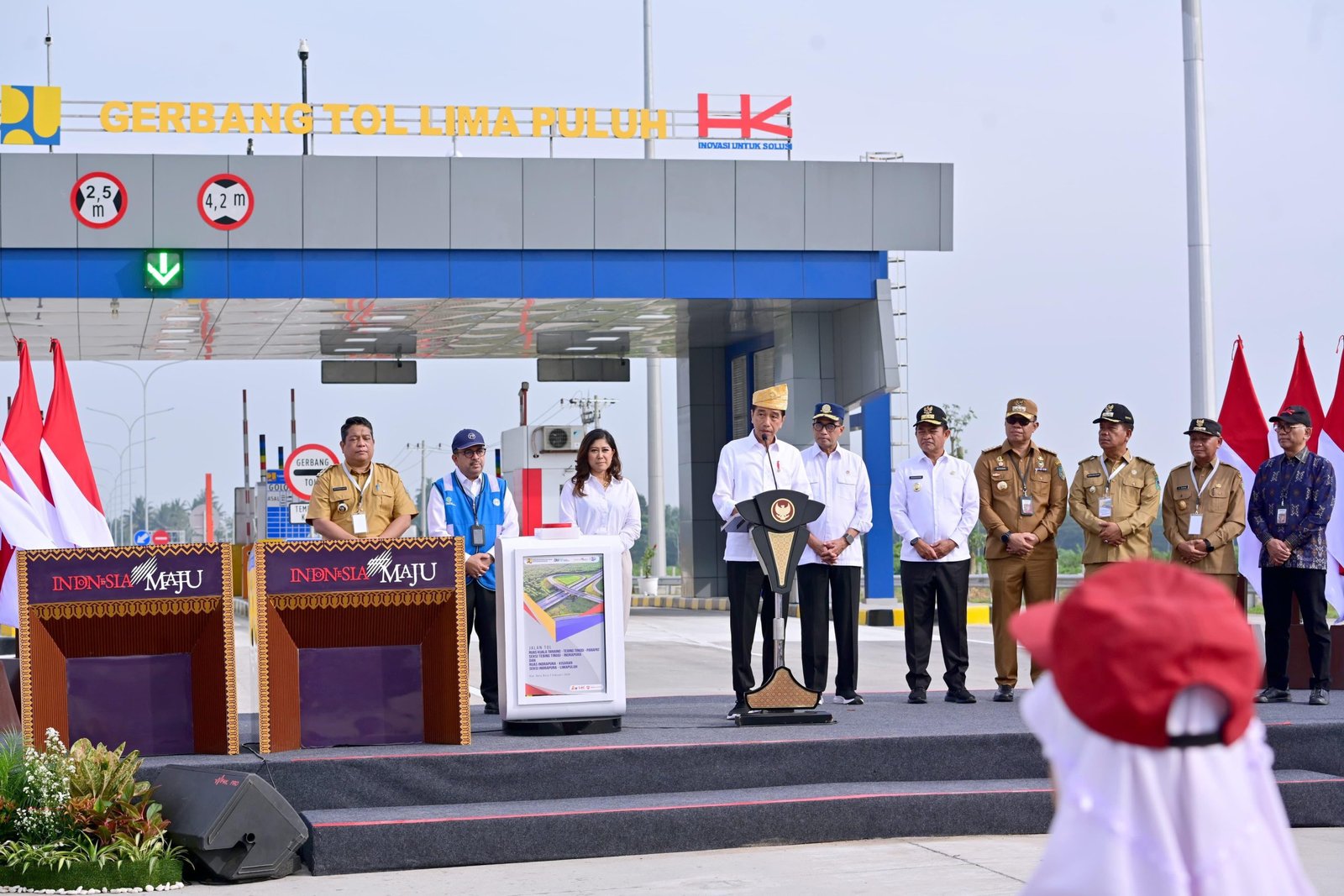 Presiden Joko Widodo meresmikan jalan tol ruas Kuala Tanjung-Tebing Tinggi-Parapat seksi Tebing Tinggi-Indrapura, dan jalan tol ruas Indrapura-Kisaran seksi Indrapura-Limapuluh di Gerbang Tol Limapuluh, Kabupaten Batubara, Provinsi Sumatra Utara, pada Rabu, 7 Februari 2024. Presiden menyampaikan bahwa jalan tol Tebing Tinggi-Indrapura memiliki panjang ruas 20,4 kilometer dan jalan tol seksi Indrapura-Limapuluh memiliki panjang 15,6 kilometer.