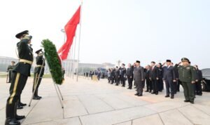 Saat lagu “Flowers to the Heroes” selesai dimainkan, Kepala Negara merapikan pita karangan bunga dan memberikan penghormatan. Setelah memberikan penghormatan, Presiden Prabowo kembali menuju rangkaian kendaraan untuk kemudian meninggalkan Tiananmen.
